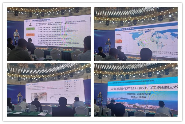 学院教师田元勇、李萌和王海波分别围绕鱼贝类锁鲜与保鲜关键技术及高附加值加工新技术、海参和贝类高值化产品开发及加工关键技术等进行了成果发布,共同探讨海洋经济高质量发展,深化合作与交流。