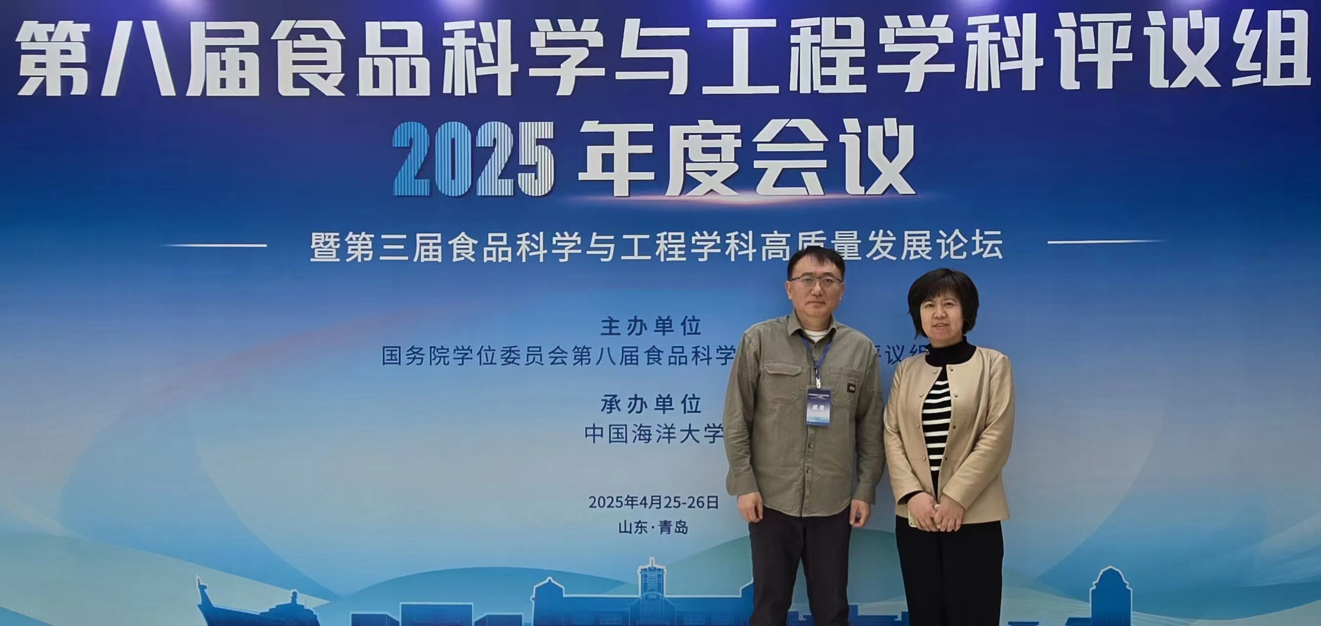 4月25日至26日,由国务院学位委员会第八届食品科学与工程学科评议组主办、中国海洋大学承办的第八届食品科学与工程学科评议组2025年度会议暨第三届食品科学与工程学科高质量发展论坛在青岛召开。食品科学与工程一级学科带头人赵前程教授、学院院长武龙、副院长卢航受邀参加会议。