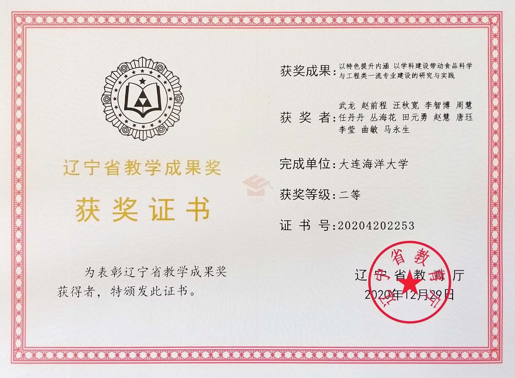 成果名称:以特色提升内涵、以学科建设带动食品科学与工程类一流专业建设的研究与实践