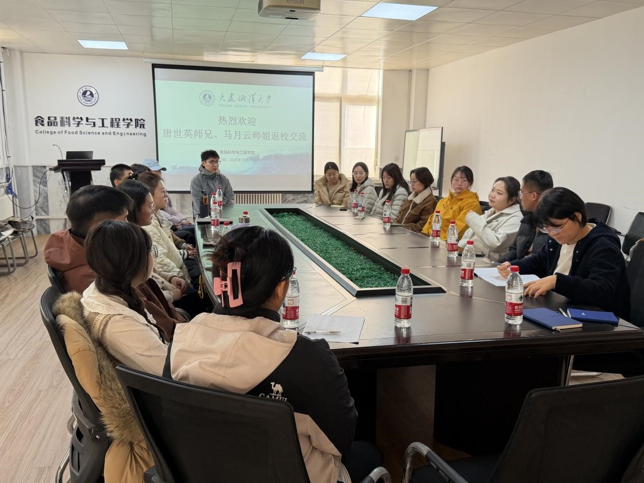 2025年10月23日,学院邀请两位优秀校友——2022届专硕、上海海洋大学博士研究生唐世英和2023届学硕、集美大学博士研究生马月云返校,与部分在校研究生座谈,分享科研体会。