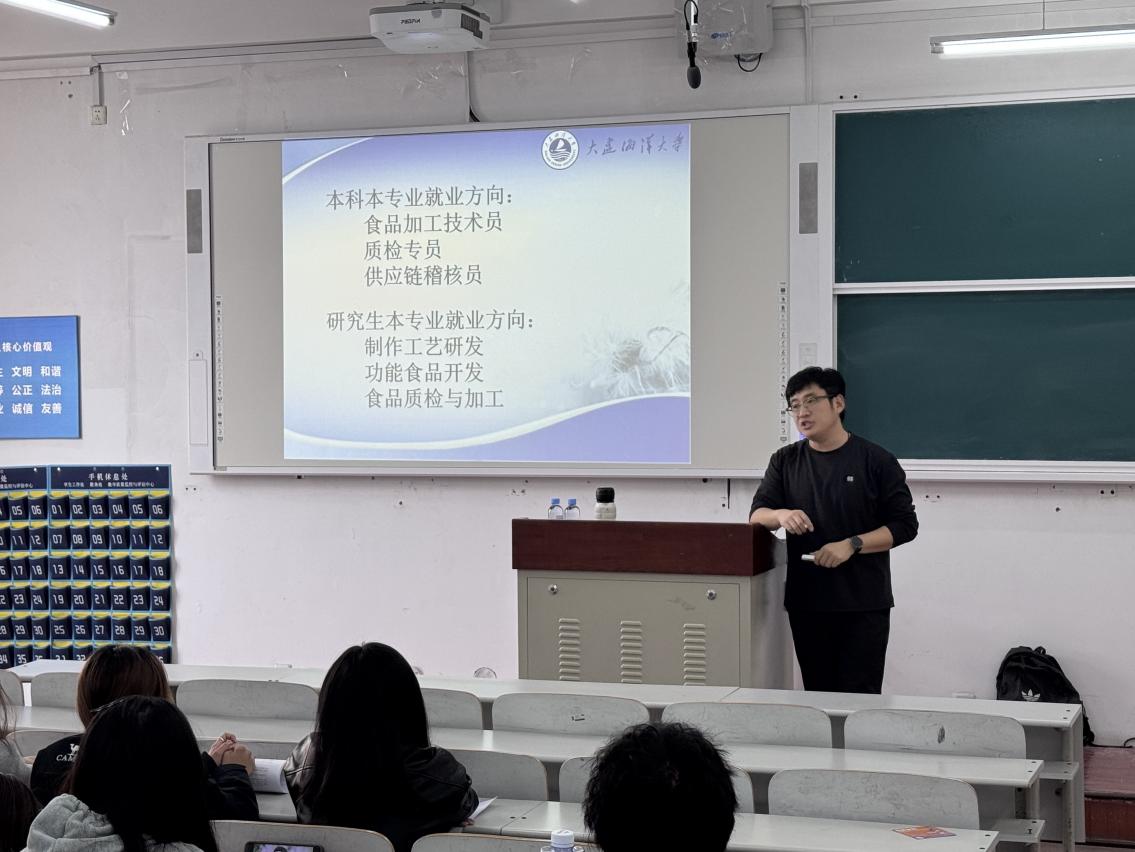 贾宇盟老师结合自身跨学科求学经历以及丰富的工作经验,围绕“考研、考公、工作”三大方向,为同学们进行了系统梳理与深入解析。他详细介绍了食品专业本科与研究生阶段的就业方向和不同学历层次在就业选择、考公考编难度等方面的差异。