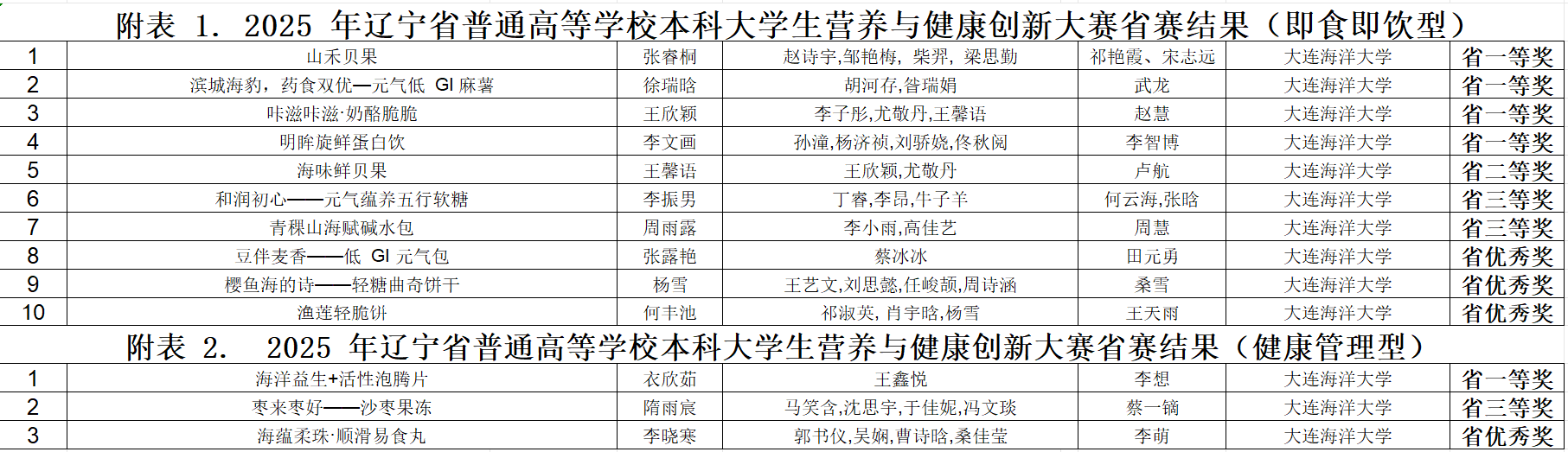 近日,由辽宁省教育厅主办,大连工业大学承办的2025年辽宁省普通高校营养与健康创新大赛成功举办。经过激烈角逐,我校推荐的作品获省一等奖5项,二等奖1项,三等奖3项。
