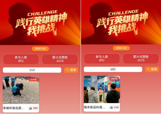 学生紧扣“践行英雄精神”的实践主题,将专业优势与社会责任深度融合,打造了一系列优质实践作品。有的走进校园课堂开展食品安全知识宣讲,用专业所学守护师生饮食安全;有的深入社区一线开展科普志愿服务,向老年群体普及健康饮食知识,传递奉献精神;有的化身海洋食品科普讲解员,在展馆传播海洋文化与食品知识;有的参与净滩环保志愿活动,清理海岸垃圾、守护海洋生态,彰显青年环保担当。目前已有多项作品在活动平台展示,累计收获数千次点赞,充分展现了食品学子昂扬向上的精神风貌与扎实的专业素养。学生将爱国情、强国志、报国行融入日常实践,在志愿服务、科普宣传、生态保护等领域发光发热,用青春力量诠释英雄精神的时代内涵。